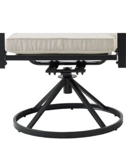 Gather around for a fun and fashionable outdoor meal with the Kaplan 5-Piece Outdoor Dining Set. Featuring a rectangle table with a slatted design that elevates the sturdy steel construction, creating a perfect partner to the four outdoor swivel dining chairs. Each chair showcases comfy back and seat cushions plus a classic x-back design and 360-degree swivel. The table’s standard umbrella hole will allow you to add some shade when dining on a hot summer day. Simple and stunning, this dining set will be a welcome addition to your outdoor entertaining.