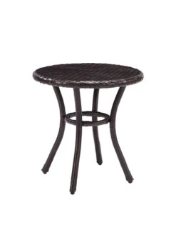 Great for smaller outdoor spaces, the Palm Harbor Round Side Table easily nestles into a variety of seating arrangements. Wrapped in all-weather resin wicker, this table has a trim steel frame that is both sleek and durable. Pull up a chair and rest your glass on this charming side table.