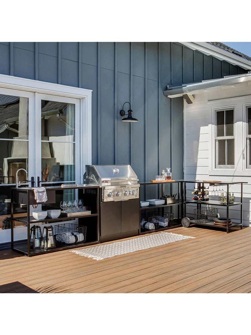 Maximize your time in the outdoors! With Veradek Outdoor Kitchen modules, you can design the perfect kitchen to fit your unique outdoor space. Made from a sturdy, corrosion resistant aluminum frame and protected by a strong, scratch-powdercoat, Veradek Outdoor Kitchen modules are built for the outdoors. Featuring a stainless steel faucet and an 8-inch-deep stainless steel sink, quick hand washes and dish rinses have never been so convenient. Installation is quick and easy and does not require a professional – simply connect the faucet to a nearby hose and connect the drain tube to a pail or catch basin and your outdoor clean-up station is ready to go. In addition, all Kitchen Counter modules come equipped with a durable, food-safe brushed stainless steel countertop that is easy to clean and maintain. Best of all, all Veradek Kitchen pieces are modular, allowing you to mix and match modules to create a kitchen to perfectly fit your unique patio or deck area. Get your outdoor party started with a Veradek Outdoor Kitchen!